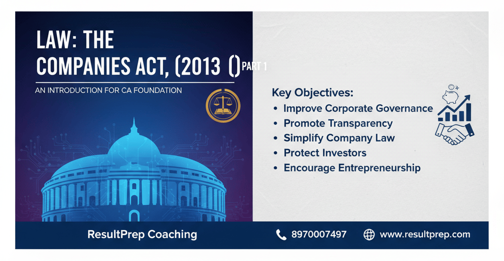 The Companies Act, 2013 lays the foundation for India’s modern corporate framework. For CA Foundation students, mastering this Act is the first step toward becoming a competent professional who understands both the law and the logic behind business operations.